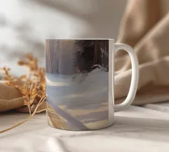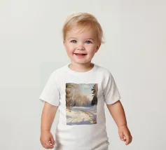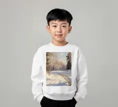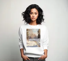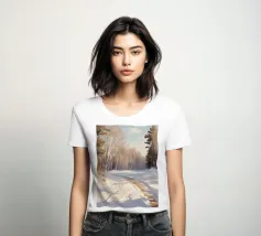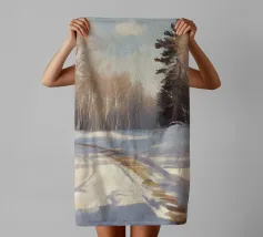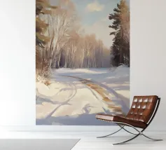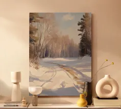 Un sentiero invernale dalle dolci curve attraversa un bosco di betulle innevato, mentre la calda luce del sole proietta accenti dorati sulla neve fresca. Il mix di toni bianchi freddi e riflessi di luce calda crea un'atmosfera armoniosa e tranquilla, ricca di vastità e poesia naturale. Questo motivo porta la tranquilla bellezza dell'inverno in ogni casa, perfetto per murales, tazze, tessuti o eleganti complementi d'arredo. Paesaggio invernale, sentiero innevato, sentiero innevato, sole invernale, bosco di betulle, natura invernale, arte invernale accogliente, illustrazione invernale, atmosfera invernale tranquilla, neve.