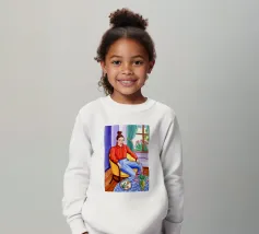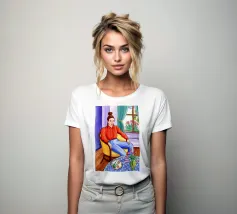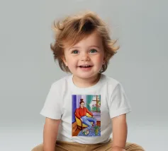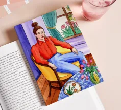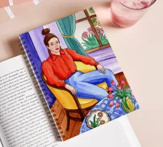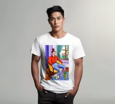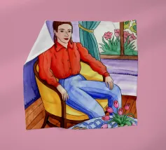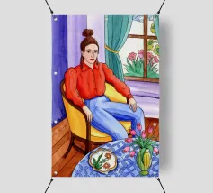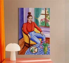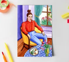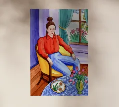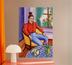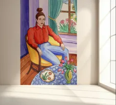 Una figura solitaria siede assorta nei suoi pensieri all'interno di uno spazio caldamente illuminato e ornato da piante rigogliose. La finestra rivela il tranquillo mondo esterno, accentuando la loro pacifica riflessione.