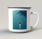 Una figura lontana nuota con grazia nell'acqua blu. Le forme pulite e la profondità evocano solitudine, esplorazione e calma: un'opera d'arte meditativa per interni tranquilli.