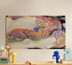 Portate nel vostro spazio l'eleganza mistica dei Serpenti d'acqua II di Gustav Klimt con questa ipnotica riproduzione del suo capolavoro del 1907. Esempio straordinario dell'Art Nouveau e dell'arte simbolista, quest'opera ritrae due figure femminili intrecciate in un'ambientazione subacquea da sogno: una celebrazione della femminilità, della sensualità e della bellezza ornamentale.