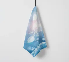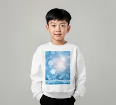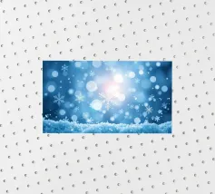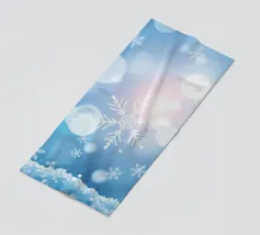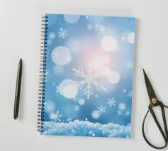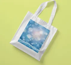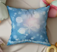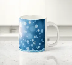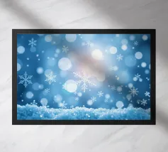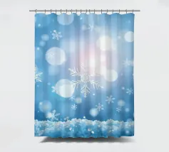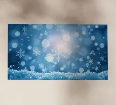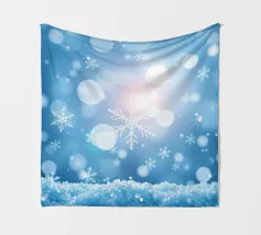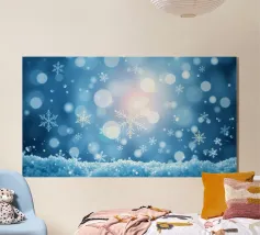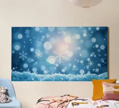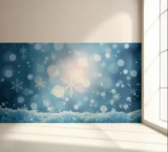 Questo disegno presenta una serena atmosfera invernale con delicati fiocchi di neve che fluttuano su un morbido sfondo blu, illuminato da delicati riflessi di luce, perfetto per una carta da parati rilassante.