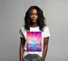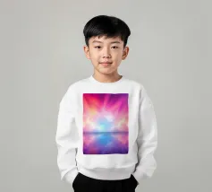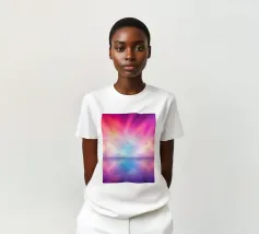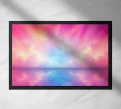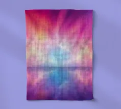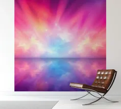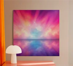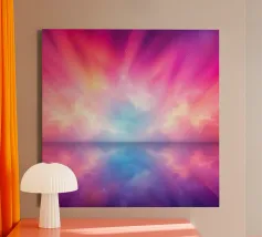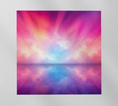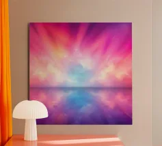Il design astratto e colorato mostra tonalità vivaci che si irradiano da un punto centrale, che si specchia magnificamente in una serena superficie d'acqua. Ideale per ravvivare gli sfondi dei cellulari.