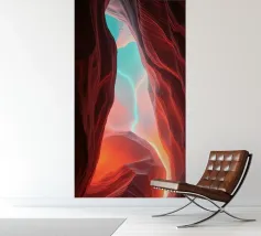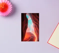 Una splendida miscela di arancione, blu e tenui tonalità pastello crea uno sfondo astratto ispirato al canyon. Ideale per gli sfondi del telefono, aggiunge un tocco di bellezza naturale alla vostra esperienza mobile.