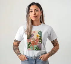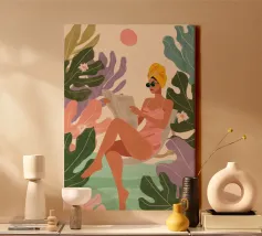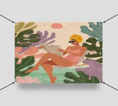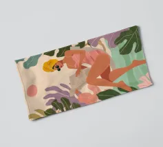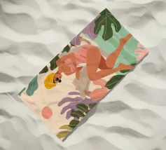Circondata da lussureggianti foglie tropicali e da tonalità riscaldate dal sole, siede con un portamento disinvolto, avvolta in un asciugamano, con gli occhiali da sole, immergendosi in un momento di tranquillità tutto suo. C'è una forza tranquilla nella sua immobilità, che ci ricorda che la fioritura non è sempre rumorosa. A volte si tratta di riposo, presenza e gioia in compagnia.