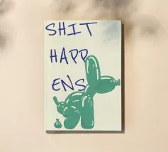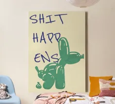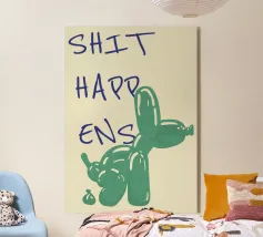 Questo originale poster pop art combina umorismo e design creativo! La divertente rappresentazione di un cane con palloncino che lascia una sorpresa inaspettata è perfettamente completata dal messaggio "Shit Happens" scritto a mano con disinvoltura. La combinazione di colori ricchi e di uno stile ispirato ai fumetti rende quest'opera d'arte la decorazione murale ideale per ambienti moderni e di tendenza, uffici o come regalo divertente per amici con il senso dell'umorismo.