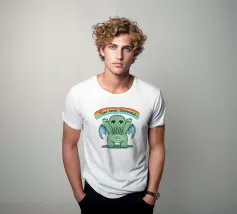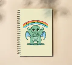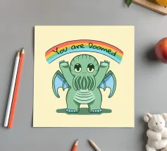 Questo piccolo Cthulhu combina carineria e caos con il suo sguardo affascinante e un vibrante arcobaleno sopra la testa, accompagnato dalla frase "You are Doomed". Un divertente mix di orrore e fascino, perfetto per i fan di Lovecraft e dei disegni creativi. Ideale per chi ama le stampe eccentriche con un tocco di umorismo.