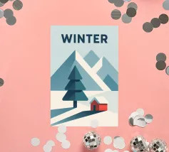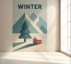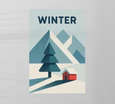 L'essenza dell'inverno catturata in una geometria poetica. Una baita rossa isolata, un abete, montagne e silenzio silenzioso: questo poster stilizzato rasserena e sublima la stagione fredda. Perfetto per un arredamento nordico minimalista ed elegante.