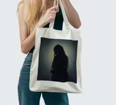 Una donna se ne sta tranquilla con le mani giunte davanti a sé, circondata da un bagliore etereo che ne evidenzia la silhouette nelle serene ore del crepuscolo.