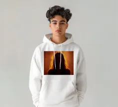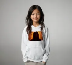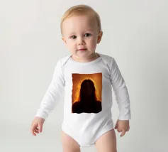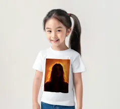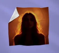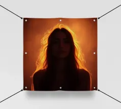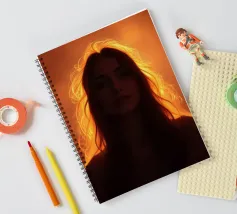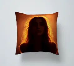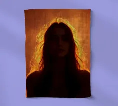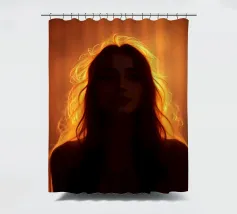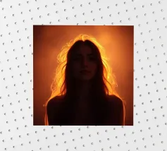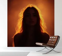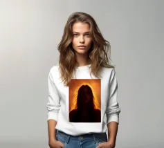 Una donna in piedi in un ambiente tranquillo con i capelli illuminati da un caldo bagliore dorato. La luce soffusa mette in risalto la sua silhouette su uno sfondo da sogno durante il tramonto.