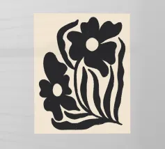 Una splendida opera d'arte minimalista con sagome di fiori neri strutturati su un caldo sfondo neutro. Questa moderna stampa botanica combina forme organiche con una sottile texture rustica, perfetta per interni contemporanei, boho o ispirati alla natura. Aggiunge profondità e carattere a qualsiasi spazio accogliente o minimalista.