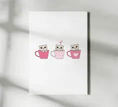 Simpatici gattini con tazze di caffè design di San Valentino