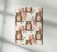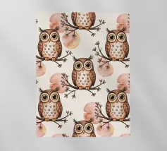 Un disegno toccante con gufi dai grandi occhi espressivi, appollaiati su esili rami, su uno sfondo morbido con tocchi di acquerello. Questa immagine naturale e infantile evoca la foresta, la saggezza e la tranquillità. Ideale per gli amanti della natura, dei gufi, degli uccelli e dei motivi morbidi, questo disegno è perfetto per camere accoglienti, camerette per bambini o decorazioni di ispirazione bohémien.