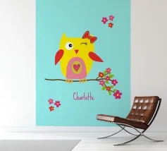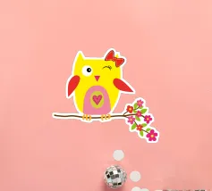 "Simpatico gufo con fiori rosa" - un disegno allegro per grandi e piccini!
