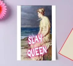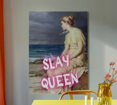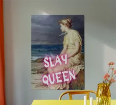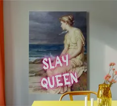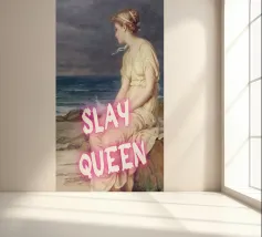 Scatenate la vostra forza interiore con "Slay Queen", una potente stampa pop art che unisce la bellezza classica a una moderna dichiarazione di forza. Questa accattivante opera d'arte presenta una serena figura classica, elegantemente posata in riva al mare, che guarda contemplativamente in lontananza. Il testo rosa acceso "SLAY QUEEN" sovrasta l'immagine, trasformando la scena tranquilla in una dichiarazione di forza e sicurezza femminile. Perfetta per aggiungere un tocco di ispirazione e di potere elegante a qualsiasi spazio moderno. Realizzato con un'eccezionale risoluzione di 7000x5000 pixel e 300 dpi, che garantisce una nitidezza