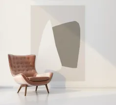 Un'opera d'arte astratta e rilassante con due forme organiche sovrapposte nei caldi toni della terra, incorniciate da un bordo bianco pulito. Il design morbido crea un senso di equilibrio e tranquillità, rendendolo un pezzo versatile per interni moderni, scandinavi o di ispirazione boho.