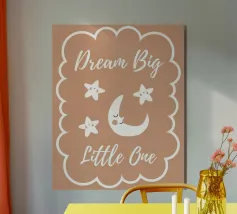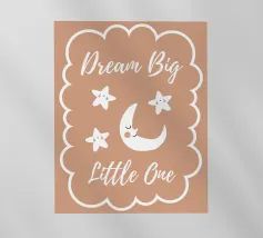 Portate un tocco di calma e dolcezza nella vostra cameretta con questa stampa minimal di luna e stelle. Caratterizzata dalla citazione "Dream Big Little One", è l'opera d'arte da parete perfetta per un'accogliente cameretta, una stanza dei giochi o come regalo per la festa del bebè.