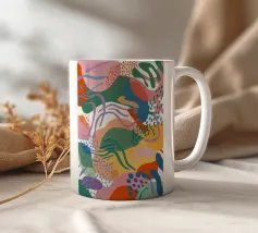Un sogno astratto complesso e caleidoscopico si dispiega con una miriade di forme, modelli e texture colorate e sovrapposte, creando una composizione visivamente sorprendente ed energica.