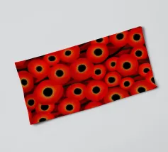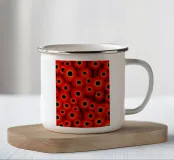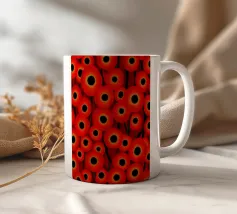 Una vibrazione visiva in rosso: quest'opera gioca ossessivamente con il potere della ripetizione nell'ornamento e con il simbolismo dell'occhio. I cerchi rossi con il centro scuro ricordano i fiori di papavero o le pupille stilizzate: un campo ipnotico tra natura e percezione. La chiarezza grafica, la ripetizione e la tensione quasi psichedelica ricordano la Op Art, il design giapponese dei tessuti e l'arte dei modelli digitali. L'opulenza floreale crea un effetto di risucchio visivo sulla parete, un vero e proprio richiamo visivo.