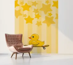 Questa giocosa stampa artistica di animali presenta una simpatica anatra gialla che cavalca uno skateboard, dando un tocco divertente e moderno alle classiche illustrazioni di animali. Con i suoi colori vivaci e il design minimalista, questa simpatica opera d'arte da parete con animali aggiunge allegria e personalità a qualsiasi stanza.