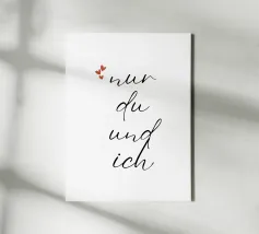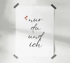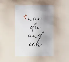 Aggiungete un tocco morbido e intimo al vostro spazio con questa stampa di citazioni "Nur Du und Ich". La tipografia scritta a mano e l'impaginazione tranquilla la rendono un pezzo bellissimo per interni moderni e minimalisti. Ideale per camere da letto, angoli di lettura o pareti di gallerie. Con la possibilità di regolare il colore dello sfondo, quest'opera d'arte diventa un'aggiunta personale e significativa alla vostra casa. Anche un romantico regalo di San Valentino.