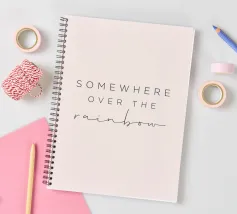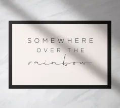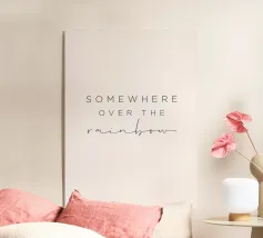 Questo design tipografico semplice ed elegante presenta la frase ispiratrice "Somewhere Over the Rainbow". La combinazione di caratteri minimalisti e di un layout morbido e moderno rende questo disegno perfetto per gli amanti dei messaggi positivi e delle citazioni senza tempo. Ideale come murale, tazza o cuscino, questo disegno porta speranza e ottimismo in ogni stanza ed è perfetto per creare un'atmosfera ispiratrice. Un must per tutti coloro che apprezzano le decorazioni eleganti e motivazionali.