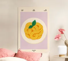 Un piatto di pura nostalgia: "Food Memories No. 01" celebra la semplicità e il calore di un classico piatto di spaghetti al basilico. Perfetto per cucine, sale da pranzo o per chiunque ami il soul food italiano. Questo poster è il preludio della serie "Food is Memories": stilizzato, chiaro, emozionale e servito con una strizzatina d'occhio al passato.