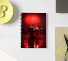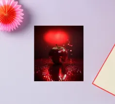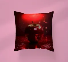 Una vibrante palla da discoteca a forma di mela rossa brilla su uno sfondo coordinato, che emana un fascino tropicale. Le sfaccettature riflettenti danzano nella luce, infondendo la scena con capriccio e luminosità, un cenno giocoso allo spirito glamour della discoteca. attenzione, la stampa non contiene veri brillantini: è solo la foto di un brillantino!
