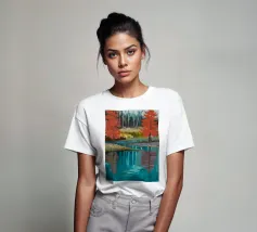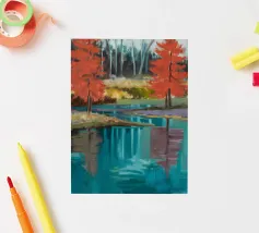 Alberi infuocati fiammeggiano accanto ad acque turchesi, raddoppiando il riflesso per aumentare la loro fiamma autunnale.