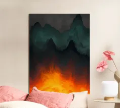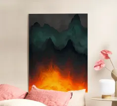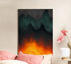Questa accattivante opera d'arte astratta presenta un'ipnotica miscela di blu freddi e arancioni caldi, creando un senso di equilibrio rilassante. Perfetto per aggiungere un tocco di moderna raffinatezza a qualsiasi ambiente.