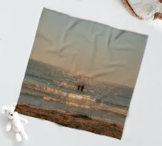 L'oceano si estende all'infinito, con sfumature che vanno dal blu profondo all'acquamarina. Le conchiglie punteggiano la sabbia e la brezza salata porta il grido lontano degli uccelli marini. È una scena pacifica, inondata di sole, dove terra e mare esistono in perfetta armonia".