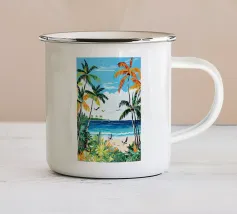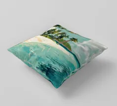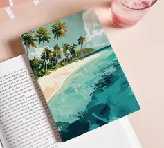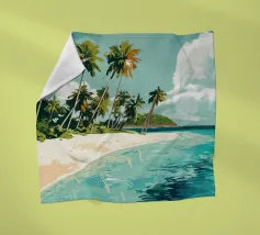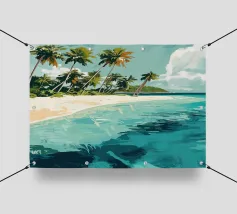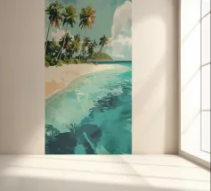 Una spiaggia sabbiosa da sogno, con palme dalle curve dolci e acqua cristallina, si estende sotto un cielo leggermente nuvoloso. Quest'opera d'arte trasporta lo spettatore direttamente in un paradiso tropicale ed evoca sensazioni di pura vacanza. I colori sono freschi e rilassanti, lo stile moderno e leggermente impressionista. Ideale per bagni, soggiorni o uffici che devono emanare un'atmosfera rilassata e stimolante. L'immagine trasmette leggerezza, distanza e l'eterna sensazione dell'estate. Un pezzo visivo di vagabondaggio per gli amanti della spiaggia, i viaggiatori e i sognatori.