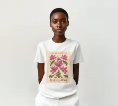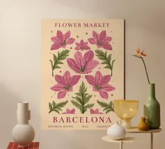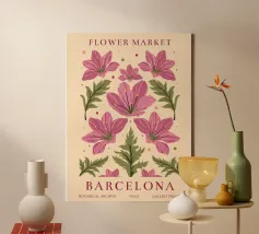 Un elegante motivo floreale ispirato al fascino del mercato floreale di Barcellona. I delicati fiori rosa abbinati alle foglie verdi creano una composizione armoniosa ed elegante. Questo disegno aggiunge un tocco speciale a murales, tazze, cuscini o altri accessori ed è perfetto per gli amanti dell'arte botanica. Un motivo senza tempo che porta freschezza ed eleganza in ogni casa.