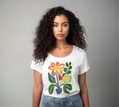 Questo disegno artistico presenta una composizione floreale stilizzata in colori armoniosi come il verde, il giallo, il blu e il rosso. Il design astratto conferisce al motivo un'estetica moderna ed è perfetto per aggiungere accenti freschi a qualsiasi ambiente. Ideale per prodotti come murales, cuscini o tazze, il suo fascino floreale e il suo stile senza tempo valorizzeranno qualsiasi ambiente.