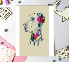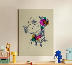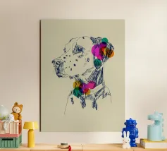 Questo elegante poster artistico del Dalmata fonde un'intricata illustrazione al tratto con un'esplosione di cerchi astratti colorati, creando una fusione dinamica di design classico e moderno. Ideale per gli amanti dei cani, i collezionisti d'arte o gli appassionati di decorazioni minimaliste ma vivaci, questa stampa unica del Dalmata cattura l'eleganza e il fascino della razza con un tocco di pop-art contemporanea. La combinazione giocosa di linee d'inchiostro precise e sovrapposizioni traslucide in viola, arancione e verde aggiunge un tocco fresco e artistico a qualsiasi spazio, perfetto per soggiorni, studi o camere dei bambini.