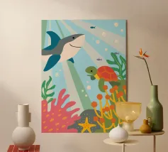Scoprite la bellezza delle profondità marine con la nostra esclusiva illustrazione di squali e tartarughe! Questa immagine combina due incredibili creature marine con dettagli sorprendenti.