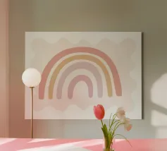 Calda stampa arcobaleno minimalista Colori: Rosa confetto, malva tenue, beige caldo, senape