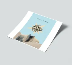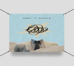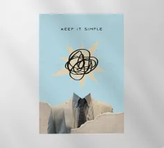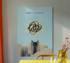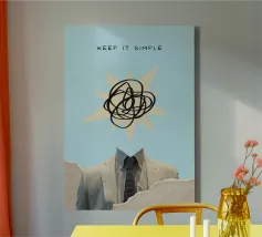 Abbracciate un momento di calma con questa spiritosa e stimolante stampa artistica a collage. Caratterizzata da un abito e una cravatta eleganti e da una "testa" astratta scarabocchiata su uno sfondo a stella, quest'opera incarna il motto "KEEP IT SIMPLE". Lo sfondo azzurro e gli elementi di carta strappata aggiungono un tocco vintage e contemporaneo. Questo poster digitale di alta qualità (7000x5000 pixel, 300 dpi) offre una miscela unica di umorismo e design moderno, perfetta per stimolare la conversazione.