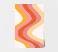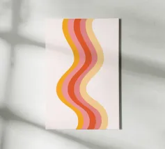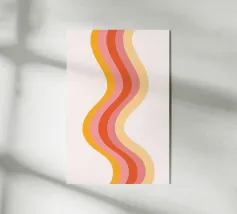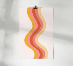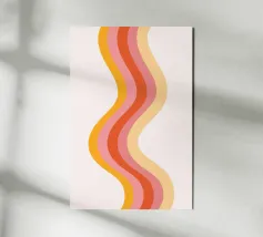 Aggiungete un tocco groovy al vostro spazio con questo accattivante poster digitale caratterizzato da un audace motivo a strisce verticali ondulate. Il design presenta un'armoniosa miscela di colori caldi e retrò, tra cui arancione, varie tonalità di rosa e giallo chiaro, su un sottile sfondo bianco sporco. Questa stampa digitale di alta qualità (7000x5000 pixel, 300 dpi) è perfetta per infondere una dose di estetica moderna di metà secolo, di movimento giocoso e di energia vibrante in qualsiasi interno contemporaneo o di ispirazione retrò.