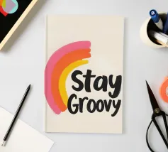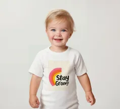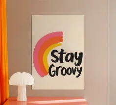 Riportate le vibrazioni retrò con questo allegro disegno Stay Groovy, caratterizzato da un giocoso arcobaleno dipinto a mano nelle vibranti tonalità del rosa, dell'arancione e del giallo, abbinato a un'audace tipografia. Perfetto come wall art per aggiungere positività al vostro spazio o stampato su top alla moda per un look rilassato e divertente. Aggiungete un tocco di nostalgia al vostro salotto o al vostro ufficio con questa coloratissima wall art, oppure mostrate la vostra personalità rilassata con i top che presentano questo design groovy. Ideale per stili di arredamento moderni, retrò o eclettici.