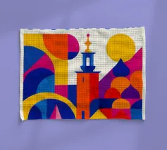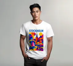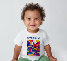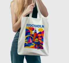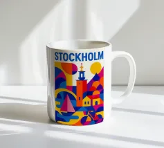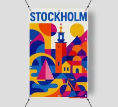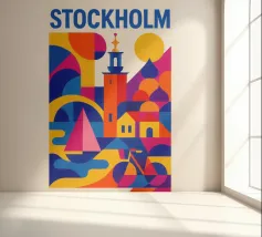 Una ventata di aria fresca attraversa Stoccolma con questo poster dai vivaci colori pop. La torre del municipio, le barche a vela, le isole e persino una tipica bicicletta sono tutti stilizzati in un cocktail di rosa, blu e giallo che celebra lo spirito creativo e naturale della capitale svedese. Una città d'acqua, di architettura e di dolcezza scandinava.