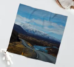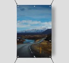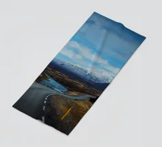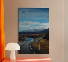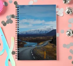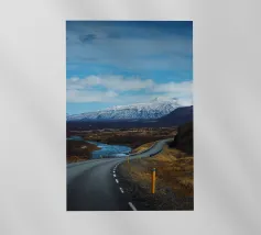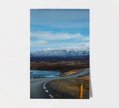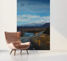 Fotografia di una bella strada e di montagne innevate in Islanda.