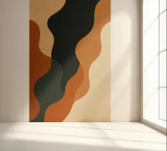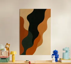 Questa composizione astratta esplora l'interazione di forme organiche fluenti in una tavolozza di colori ricchi e terrosi. Caldi ocra, verdi profondi, neri decisi e beige morbidi si uniscono in curve morbide e strutturate. Ogni forma sembra intrecciarsi alla successiva, creando profondità visiva e un ritmo calmo ma dinamico. Perfetto per aggiungere carattere agli interni moderni.