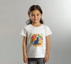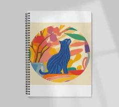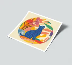 Un gatto a strisce siede in una composizione colorata e astratta di fiori e piante, ispirata a Henri Matisse. Questa vibrante rappresentazione celebra la gioia e la creatività del mondo animale in stile fauvista.