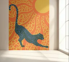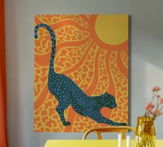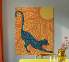Catturate l'eleganza selvaggia di un Chitah che si crogiola nella luce dorata del sole con "Sunny Stripes". Questo pezzo vibrante porta il calore e la bellezza della natura in ogni spazio.