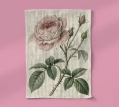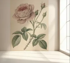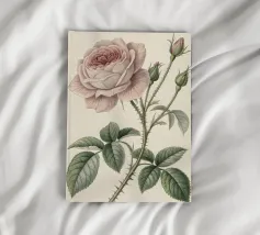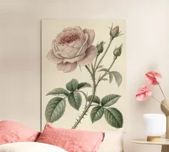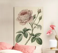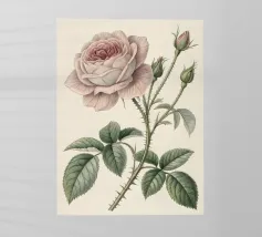 Una squisita e dettagliata illustrazione botanica con una delicata Rosa centifolia rosa con boccioli, spine e foglie. Realizzato in un classico stile vintage, questo pezzo cattura la bellezza senza tempo e la struttura intricata dell'amata rosa, perfetta per aggiungere un tocco di eleganza naturale e fascino storico a qualsiasi spazio.
