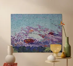Immergetevi nel cielo vibrante dello "Studio del cielo" di Leo G. Mielziner, un suggestivo dipinto post-impressionista. Questo pezzo accattivante è caratterizzato da un dinamico gioco di pennellate, che raffigurano un cielo turchese brillante ornato da nuvole vorticose nei toni del lavanda, del viola intenso e di accenni di arancione acceso. Il primo piano accenna a un paesaggio lussureggiante, che fa da sfondo al cielo etereo. Quest'opera d'arte è una testimonianza della maestria di Mielziner nel colore e nella forma, che conferisce energia espressiva a qualsiasi ambiente. La nostra riproduzione d'arte digitale vanta un'incredibile risoluzione di 7000x5000 pixel a 300 dpi, assicurando così un'ottima