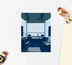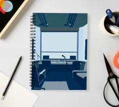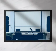 Design dello studio musicale che ottimizza l'acustica e l'ergonomia. Un layout efficiente e confortevole per la massima registrazione e produzione musicale.
