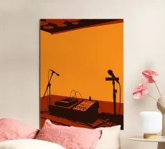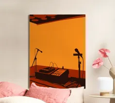 Design dello studio musicale che ottimizza l'acustica e l'ergonomia. Un layout efficiente e confortevole per la massima registrazione e produzione musicale.