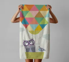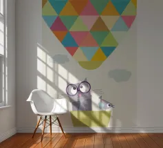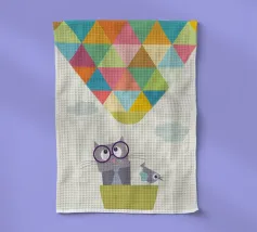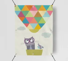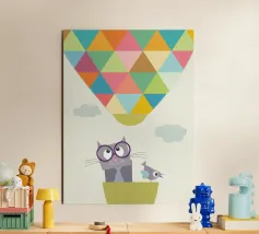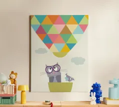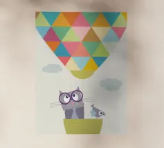 Questa affascinante e colorata illustrazione presenta un gatto stravagante e il suo amico uccellino che si librano nel cielo in una vivace mongolfiera. Con motivi geometrici giocosi, texture morbide e uno stato d'animo spensierato, questo disegno conferisce un senso di meraviglia e avventura a qualsiasi spazio. Perfetto per le camere dei bambini, le camerette o per chiunque ami l'arte stravagante e divertente!