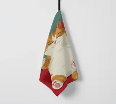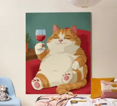 Un gatto bianco dorme pacificamente, immerso in un caldo raggio di sole, con foglie verdi sullo sfondo. L'opera d'arte cattura magnificamente un momento di tranquillità di un gatto che si gode un pisolino in un luogo illuminato dal sole.